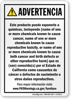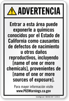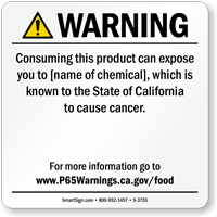 Yes, our consumer product exposure Prop 65 sign is one of our customizable templates where you can specify the chemical name and source of exposure, formatted at the minimum 72-point font size required by law with sign size adjusted as needed to accommodate additional chemical information.