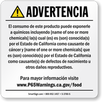 • • We offer a large selection of California Prop 65 signs and labels, both, in English and Spanish, that comply with the most recent regulations (Effective August 30, 2018).