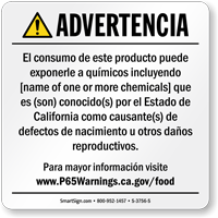 • • We offer a large selection of California Prop 65 signs and labels, both, in English and Spanish, that comply with the most recent regulations (Effective August 30, 2018).