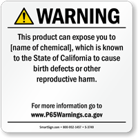 Yes, our consumer product exposure Prop 65 sign is one of our customizable templates where you can specify the chemical name and source of exposure, formatted at the minimum 72-point font size required by law with sign size adjusted as needed to accommodate additional chemical information.