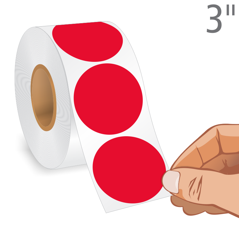 3 in. Red Round Dot Stickers will come handy in a roll to mark equipment, tools, shipments and products in your inventory. Write your message using a pen or a pencil. Acrylic adhesive keeps the label firm in place.
