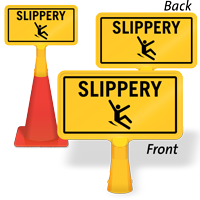 Our safety cone top signs slide directly onto any standard safety cone without tools or adhesive, instantly converting a bare cone into an informative safety sign in a wide range of messages including Wet Floor, Caution, Do Not Enter, and custom text that are portable, reusable, and easy to deploy wherever a cone-based warning is needed.