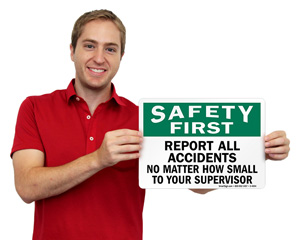 • • A colorful, vivid safety first header in green easily emphasizes your safety policy. We offer a variety of designs or you can customize your own.