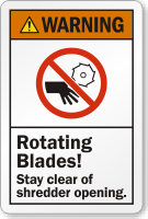 Check out all our Keep Hands Clear Labels on this page. Our OSHA and ANSI Labels warn workers to practice safety with machines associated with crushing, cutting, entanglement, and snapping hazards. Moving and rotating blades shafts, and other machine parts are dangerous to work with and everyone must be well informed of their risks before starting work.