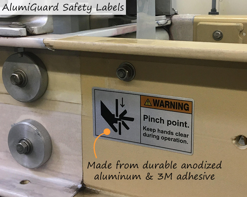 • • Click on the design for Nip and Pinch Point Safety Label that best fits your machine. Each design is available in a wide variety of sizes and materials.