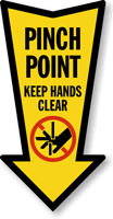 Protect hands. Pinch and Nip Points can be a rapid and menacing danger. Handy labels warn just when and where a warning is especially needed. Detachable arrow labels show exactly the point of danger. Pinch Point Stickers are sure to save workers from accidents and injury.