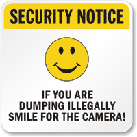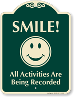 Smile You’re On Camera Signs can be installed anywhere you have surveillance cameras installed, provided they are conspicuous (within normal eye range) and in areas with adequate lighting. While aluminum signs are ideal for outdoors, plastic, vinyl, or polyester signs or labels are ideal for indoor applications. Some of the best locations for these camera signs are -