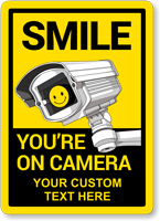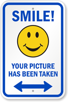 Grab attention with a smile, and let everyone know they're on camera. Choose from aluminum signs, stencils, or Z-shaped signs for a message that hangs from the ceiling.