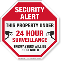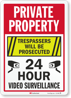 Smile! You're on camera. Our range of 24-hour surveillance signs let you protect your personal property from thieves, in vinyl or aluminum.