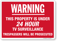 Smile! You're on camera. Our range of 24-hour surveillance signs let you protect your personal property from thieves, in vinyl or aluminum.