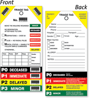 • Triage Tags allow victims to receive prompt medical attention according to the severity of the injury.