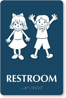 • • Our restroom signs comply with ADA signage requirements with raised letters, California Grade II Braille, symbols for enhanced accessibility.