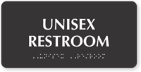 Yes. We offer unisex restroom signs in English, Spanish, and both languages. These signs are tactile and feature Grade 2 braille. Made using rigid, non-glare plastic, these signs are available in 15 color schemes and come with foam adhesive strips.