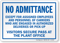 Give a professional look to your workplace by displaying Visitors Signs. Visitors Signs communicate your message clearly and quickly, with a no nonsense attitude. Visitor Signs will put a stop to admittance by unauthorized individuals.