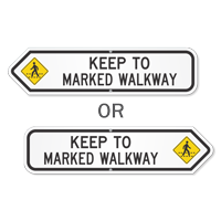 Yes, our keep to marked walkway pedestrian sign and customizable walkway sign templates let you specify directional arrows, aisle designations, distance markers, or facility-specific pedestrian routing information in aluminum, adhesive floor sign, and hanging sign formats to support any facility layout and traffic flow plan.