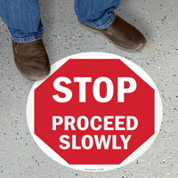 Yes. We offer customizable warehouse floor sign templates that let you choose from stop, yield, look both ways, and other intersection safety messages. Custom floor signs are printed on the same SlipSafe anti-skid vinyl as our stock designs, ensuring identical durability and adhesion performance for any message that best fits your facility's aisle layout and traffic flow patterns.