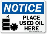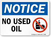 Waste Oil signs are used in auto repair shops, maintenance facilities, and any industrial site that generates used oil. They are placed on the large collection tanks and on the walls of the storage area, often near hazardous storage area signs.