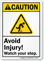 “Fall” is the leading cause of workers’ death in construction sector. The Center for Disease Control (CDC) also says that one in five falls causes a serious injury like a broken bone or head injury. Use Watch Your Step Signs to reduce the risk of slip, trip, and fall accidents and lost work time in your facility. Give a heads up to employees and visitors with a caution sign, or tell them to look down, to prevent an injury. Not all surfaces (or falls) are smooth!